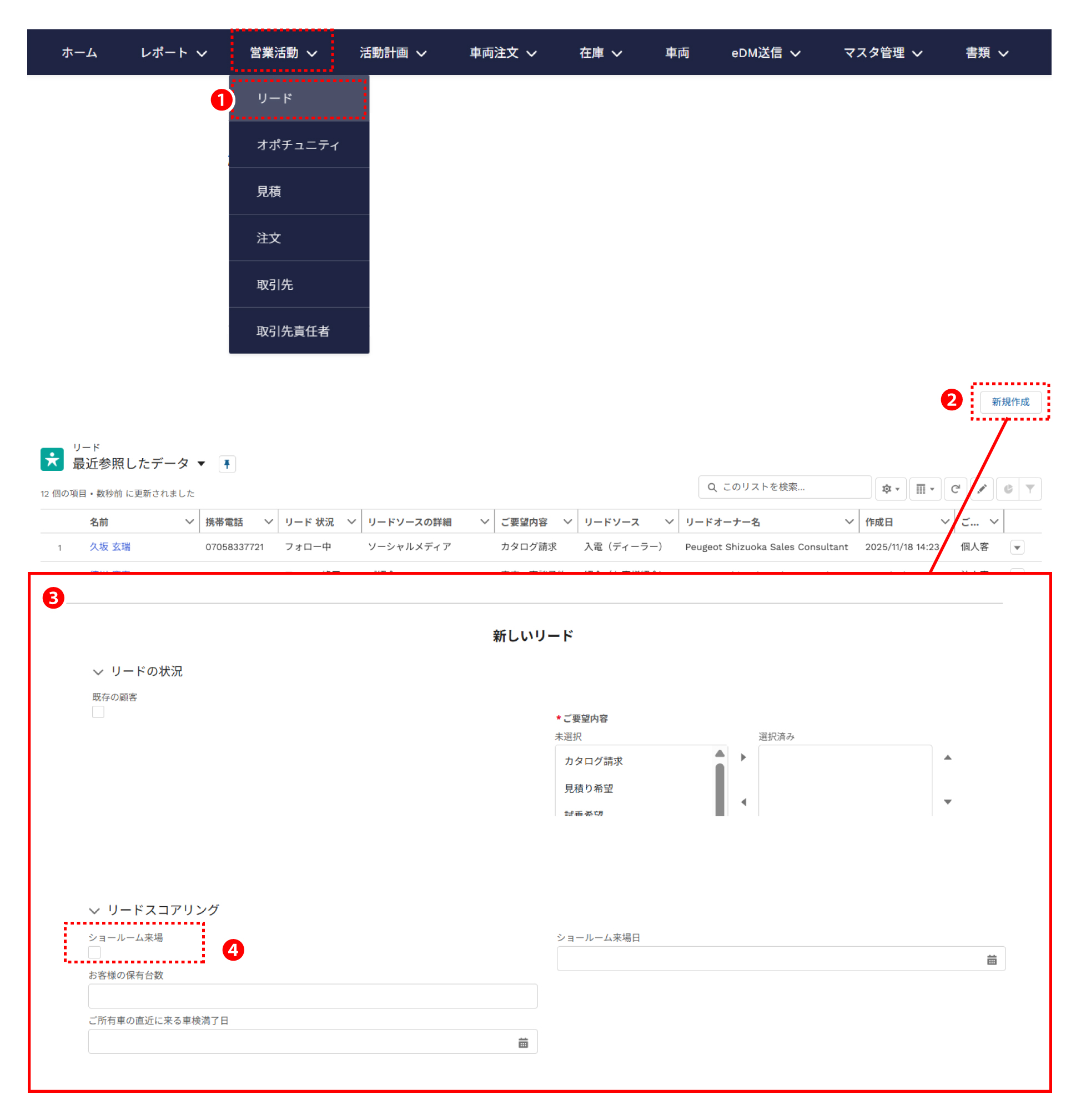 以下では、リードやオポチュニティ作成時、及びフォローアップ時の来場入力法を解説します。
