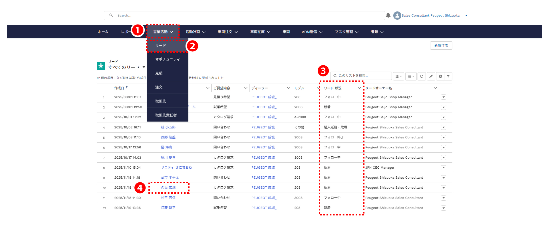 セールススタッフの活動(リードフォローアップ)状況を確認をします。