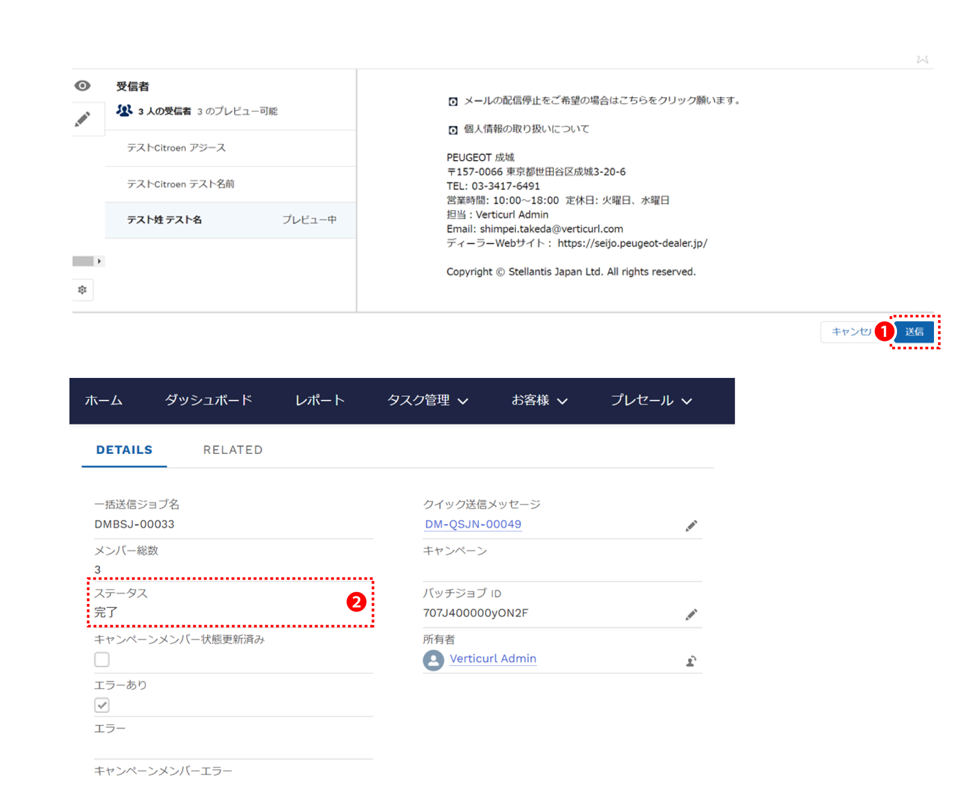 (ただし、送信直後にeDM一斉送信の結果を確認することはできません。 レポートに反映されるまで、約1時間を要します。)