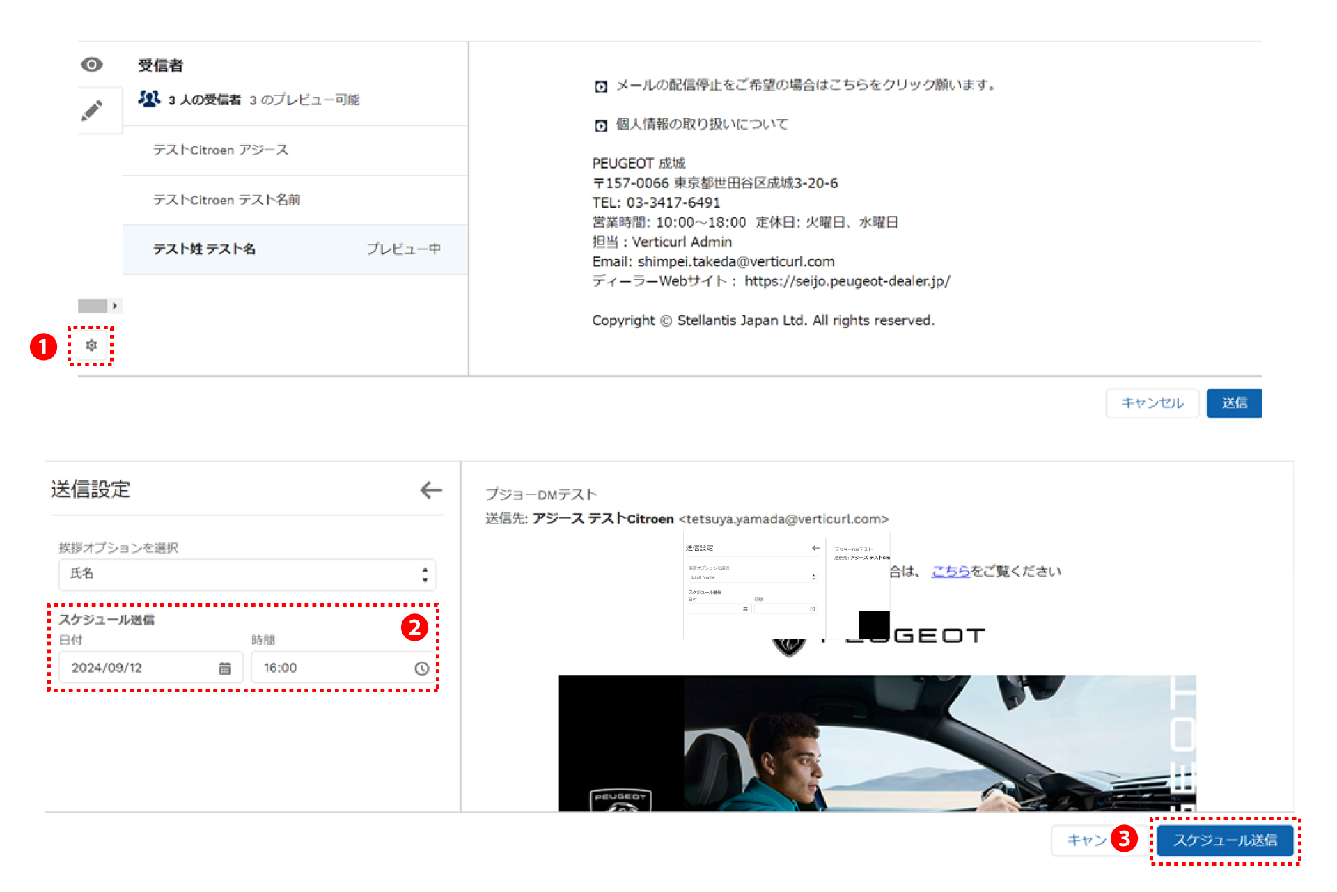 ❸ 日時の設定が完了したら「スケジュール送信」をクリックします。スケジュール送信が完了し、指定した時刻にeDMが送信されます。