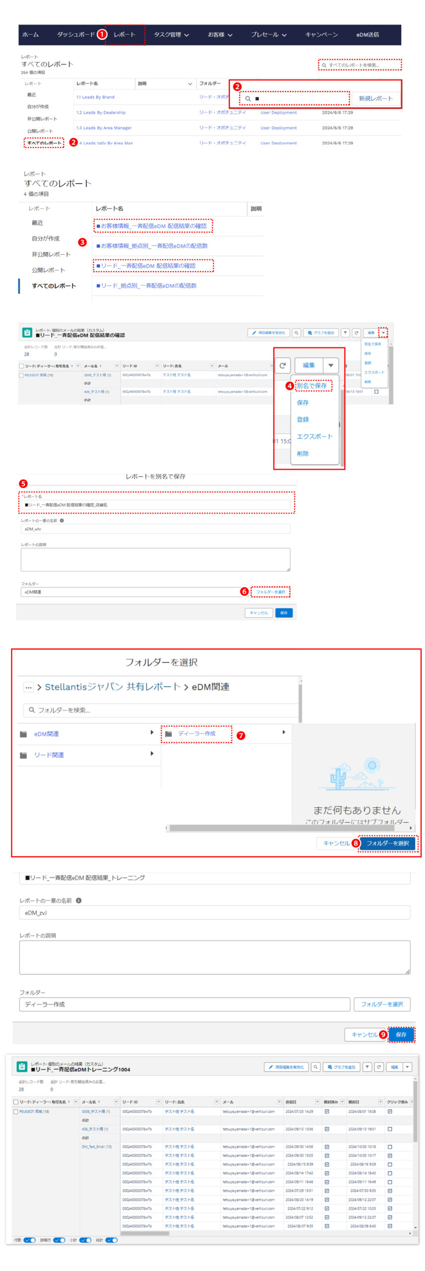 レポートは事務局で用意したひな型をディーラー様に複製いただくことで使用が可能です。 配信対象がリードの場合、オポチュニティの場合で異なるレポートを使用します。