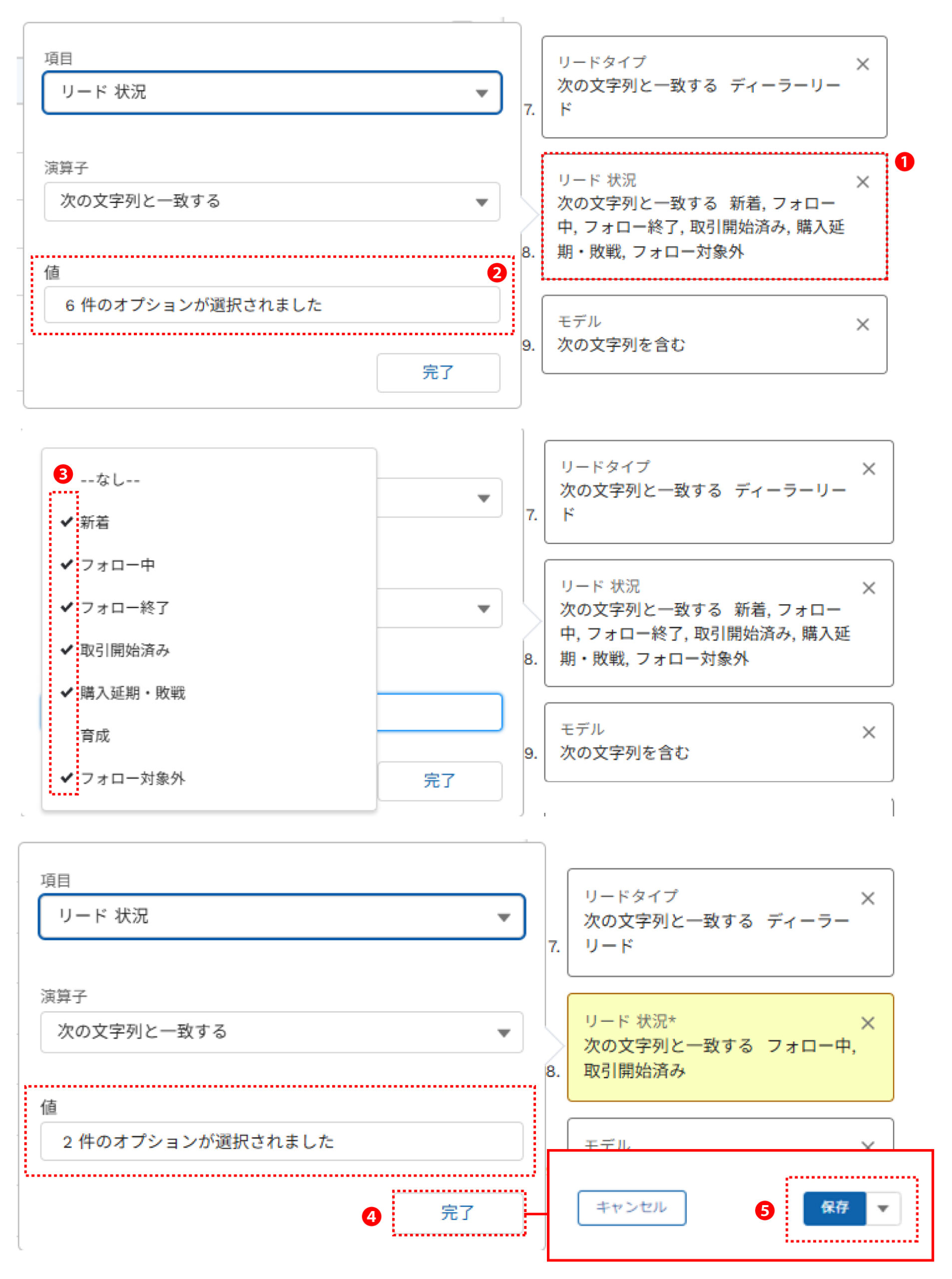 ❶「リード状況」の条件欄をクリックします。
