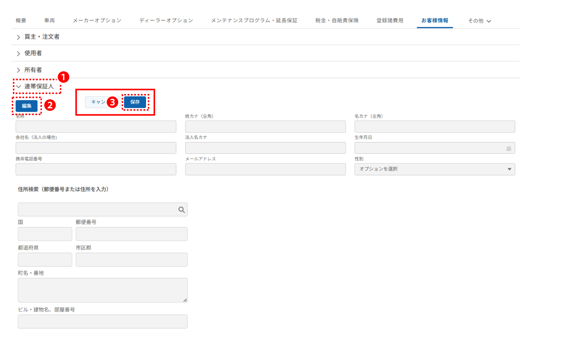 ❶「連帯保証人」をクリックし、詳細情報を表示します。