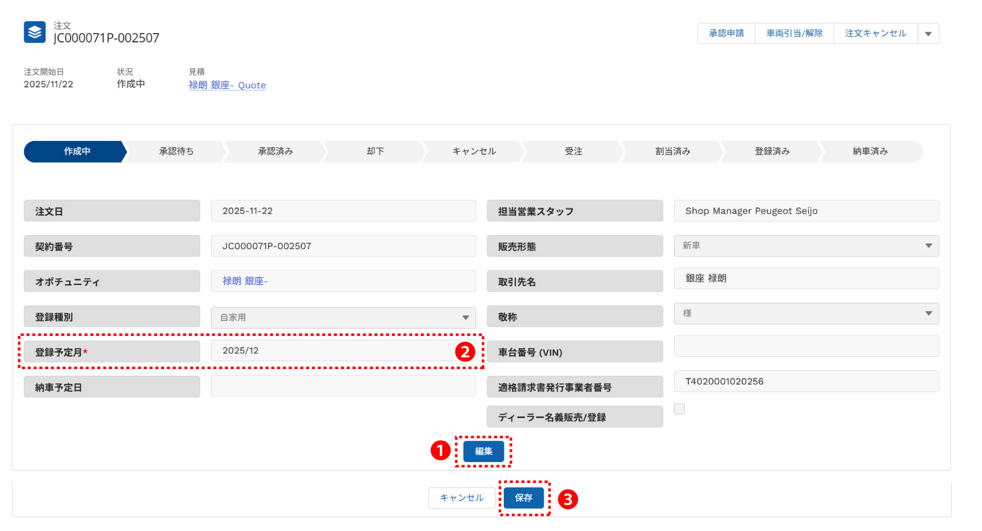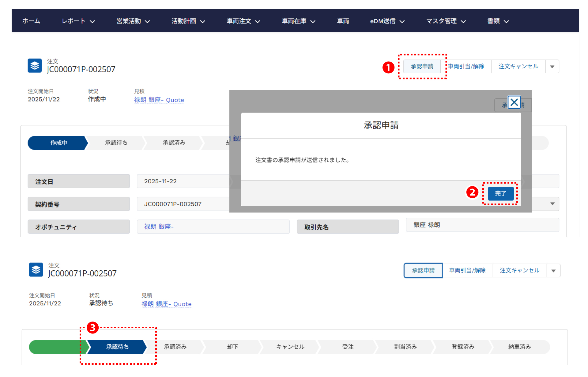 注文書が完成したら、店長/セールスマネジャーへの承認を申請します。