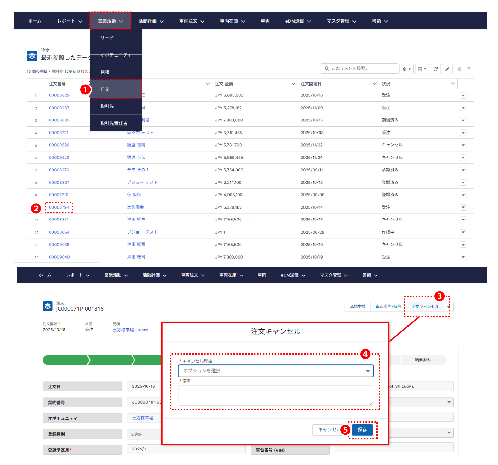 お客様のご都合などで注文書がキャンセルになった場合、注文のキャンセル処理を実施します。