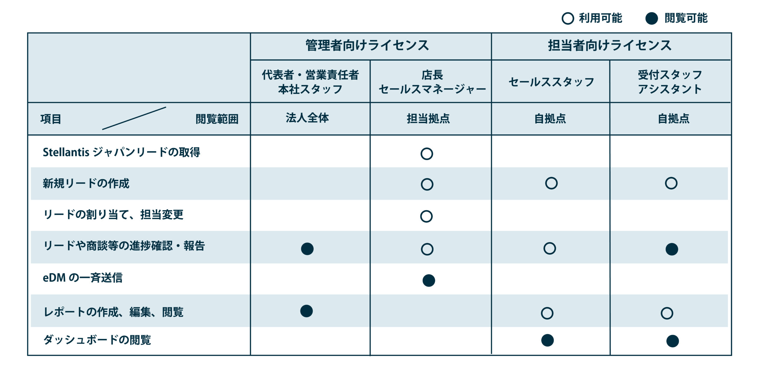 新車の購入に興味を示す、または興味を示す可能性のある見込み客を意味します。見込み客自身によるディーラーへのアプローチのほか、メーカーウェブサイトなどからのオンライン申込みなどから情報を得てリードが作成されます。これらのリードは営業チームによってフォローアップされ、育成(ナーチャリング)するためのターゲットになります。