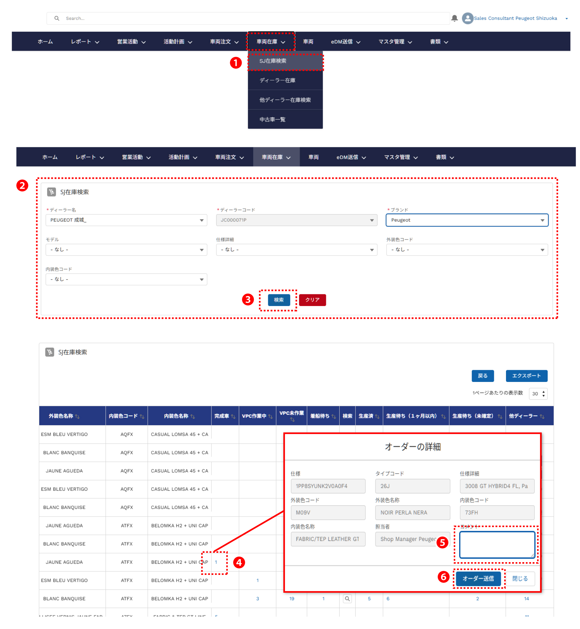 Stellantis ジャパンの公開している在庫車両を検索し、発注します。