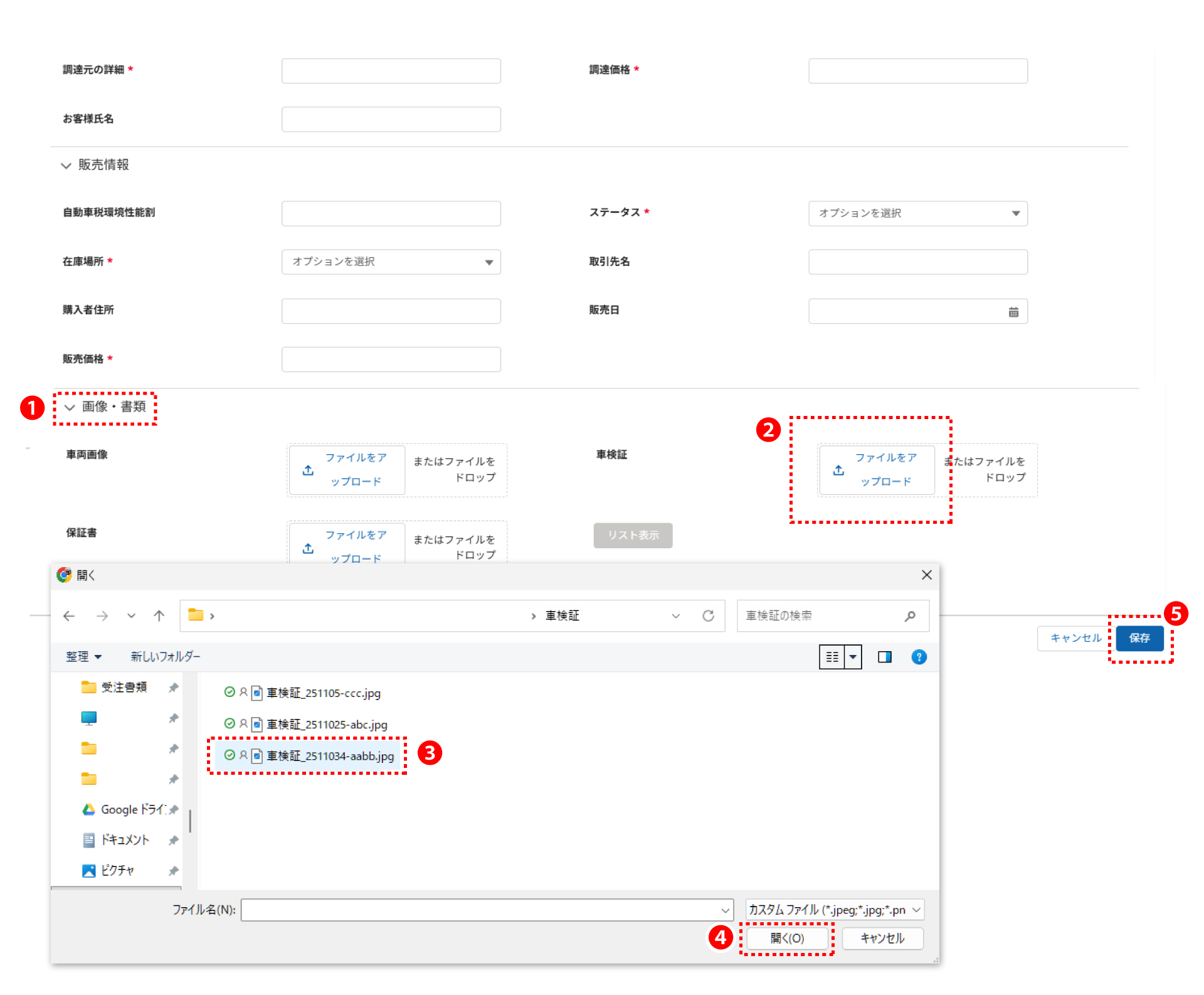 ※車両に関する画像や書類を添付する場合は、「画像・書類」を活用します。登録方法は次を確認ください。​